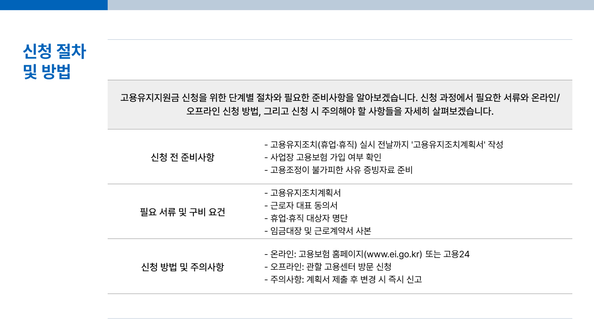 - 신규채용 제한 — 고용유지 기간 내 신규 채용은 원칙적 금지