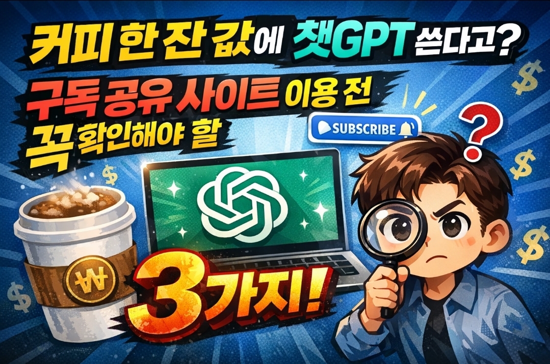 이런 상황에서 최근 커피 한 잔 값(월 3~5천 원)으로 프리미엄 계정을 공유해서 쓸 수 있다는 'AI 구독 공유 플랫폼'들이 우후죽순 생겨나고 있습니다. 과연 안전할까요? 오늘은 구독 공유 사이트를 이용하기 전, 내 돈과 개인정보를 지키기 위해 반드시 확인해야 할 3가지를 정리해 드립니다.