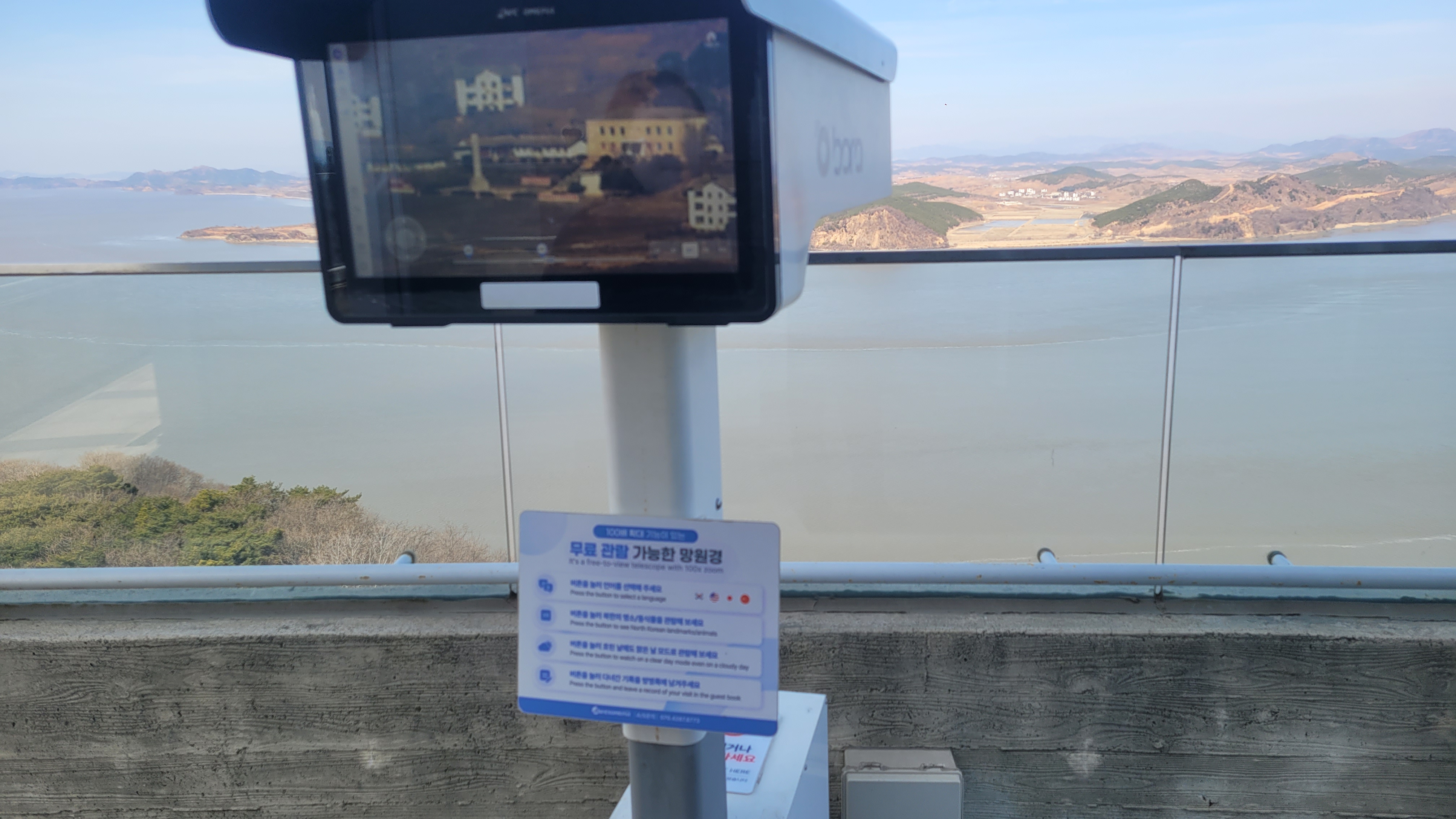 뉴스에서만 보던 북한 풍경을 직접 보는 경험이라 상당히 특별한 장소였습니다. 제가 본 장면은 운동장에 아이들이 배구 하는 모습과 사람이 걸어가는 모습, 오토바이 타고 가는 모습을 보았는데 같은 사람인데 강 건너편으로 망원경 이용해서 보는 모습이 참 새롭게 느껴졌습니다.