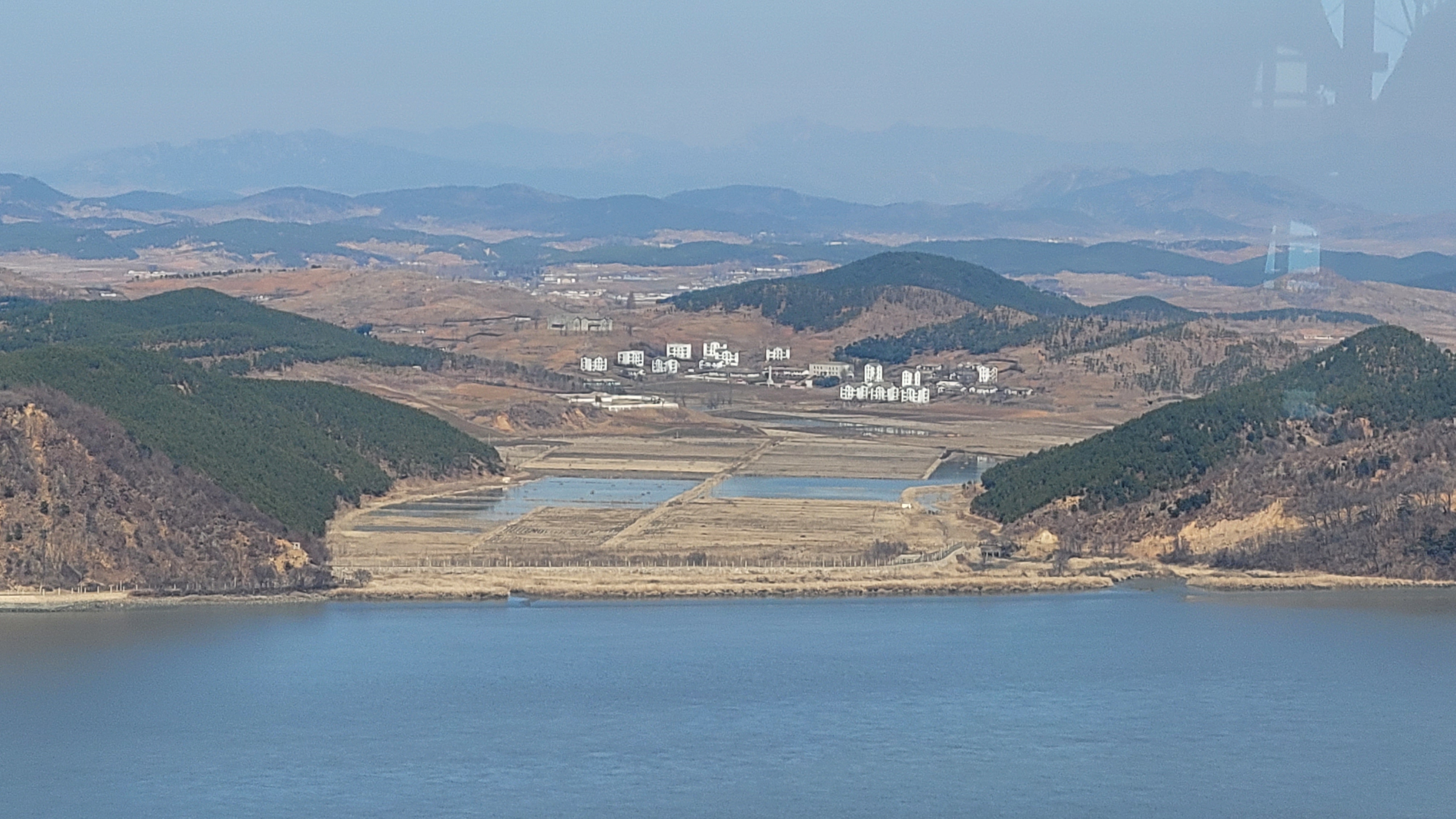 날씨가 좋다면 북한 개풍군 지역 마을과 농경지를 망원경으로 더 자세히 아래 사진처럼 확인할 수 있습니다.