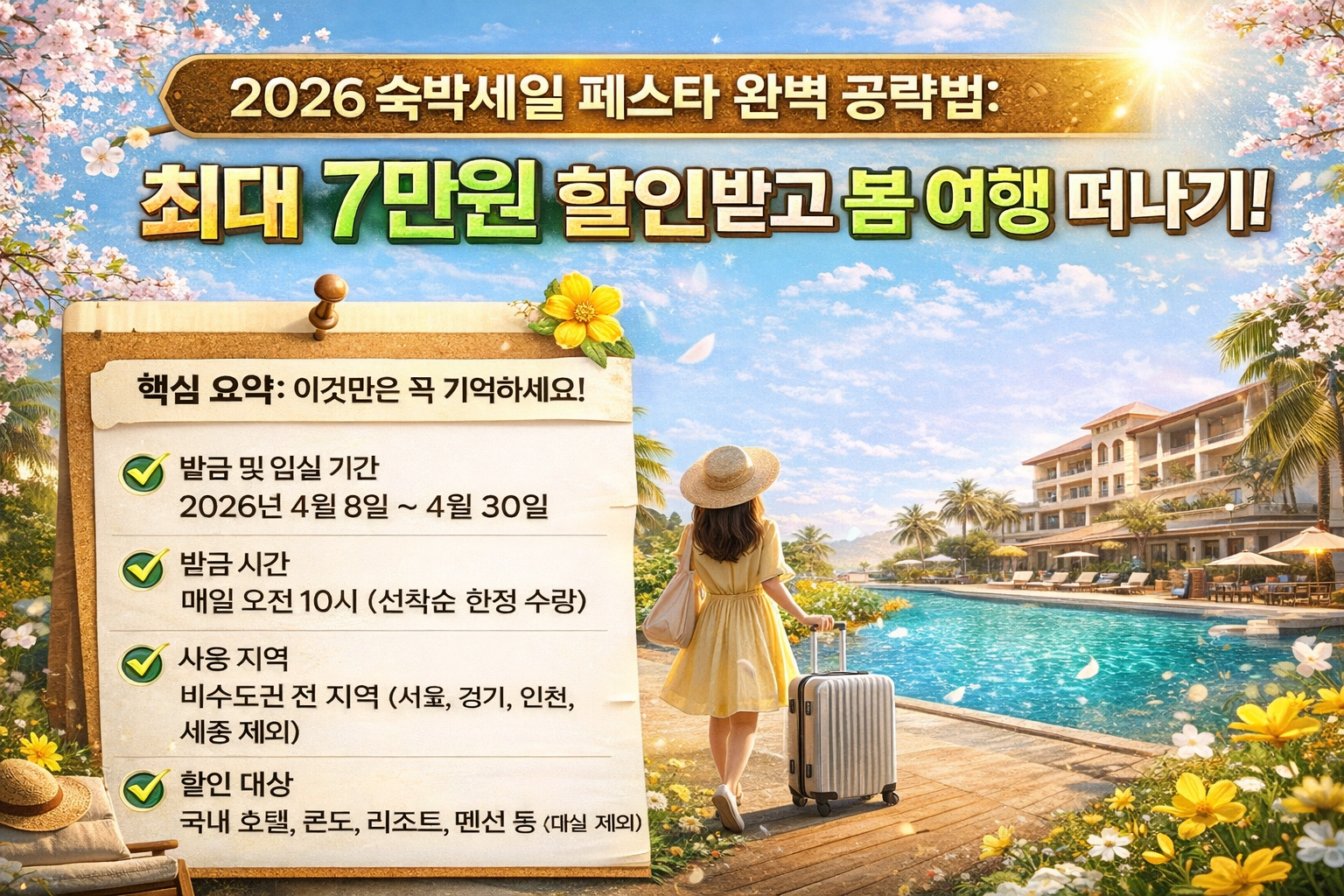 오늘은 올봄, 국내 여행을 계획 중인 분들이라면 절대 놓쳐서는 안 될 '2026 대한민국 숙박세일 페스타' 정보를 가져왔습니다.