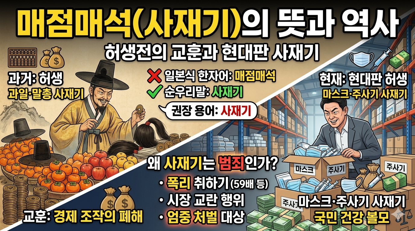 - 역사 속 사례: 소설 속 인물 '허생'은 과일과 말총을 사재기해 나라 경제를 흔들었습니다. 2026년의 '현대판 허생'들은 마스크나 주사기 등 국민 건강을 볼모로 잡고 있다는 점에서 그 죄질이 훨씬 무겁습니다.
