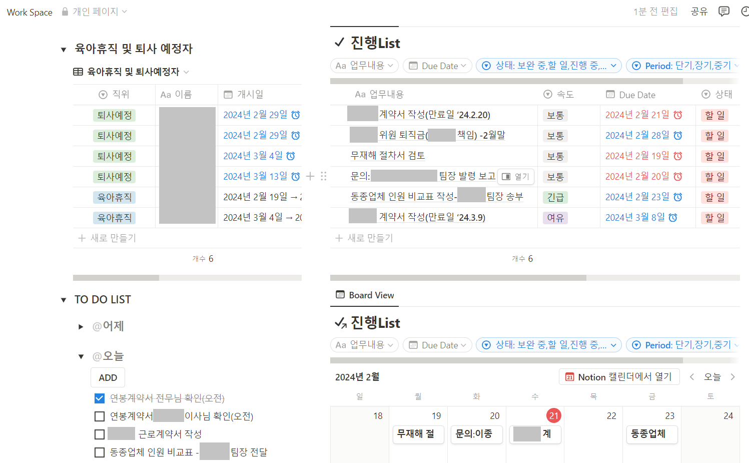 - 실시간 협업과 공유 : 노션의 가장 큰 장점인 실시간으로 문서를 공유하고 편집할 수 있는 기능을 제공하여, 팀 프로젝트나 업무 협업에 매우 유용합니다. 여러 사용자가 동시에 작업하며 변경 사항을 실시간으로 반영할 수 있어 효율적인 협업을 가능하게 합니다.