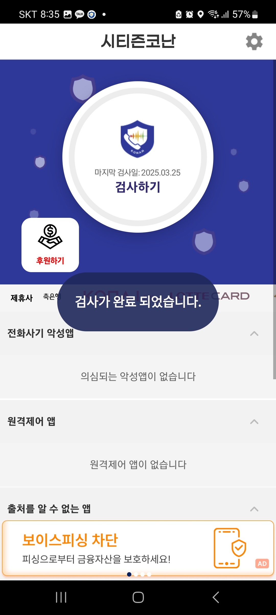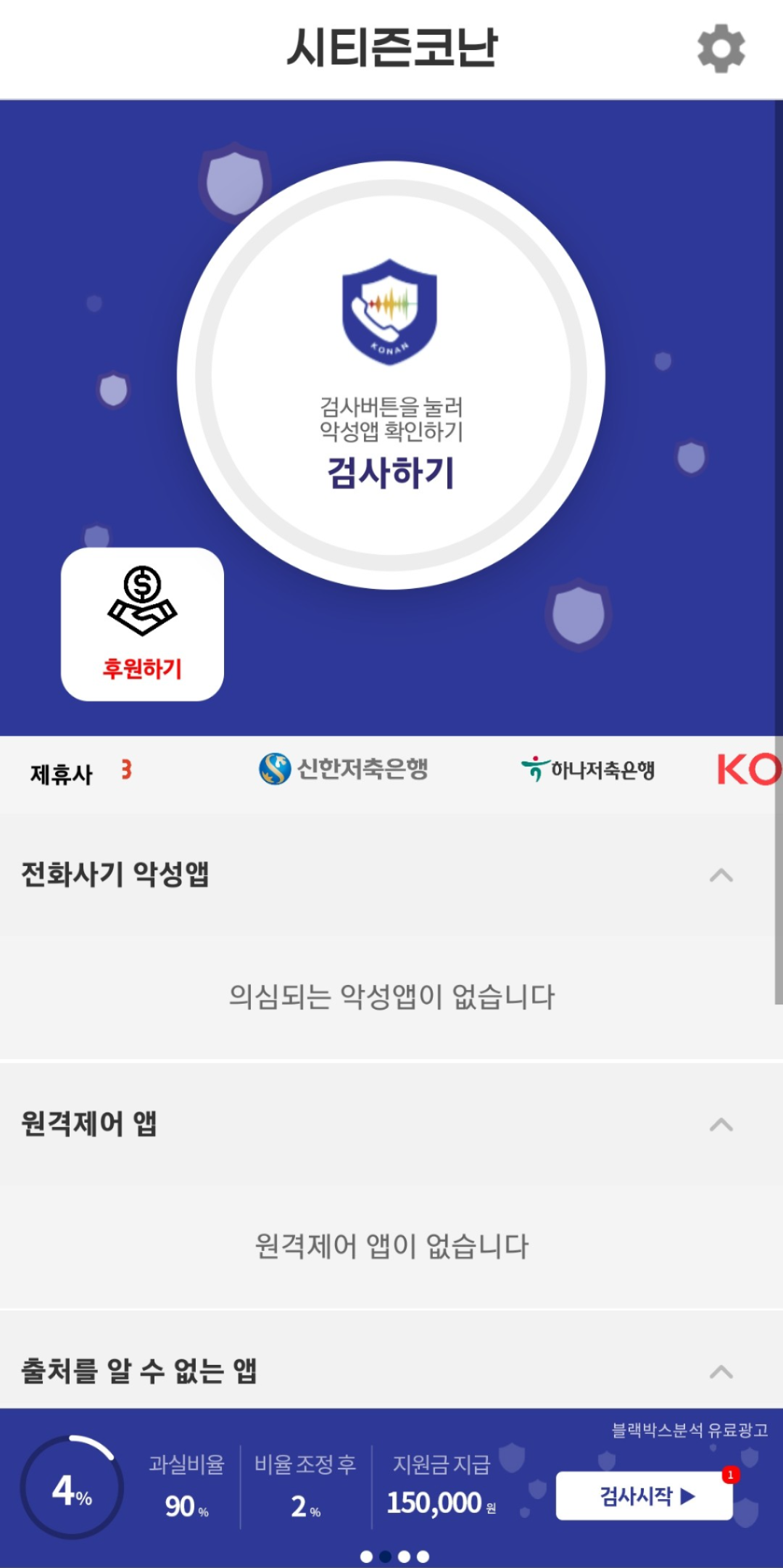 보이스피싱, 즉 전화나 문자 메시지를 이용한 금융 사기 범죄가 날로 증가하는 가운데, 이를 예방할 수 있는 여러 가지 방법이 필요합니다. 시티즌코난(=피싱아이즈 폴리스)은 악성앱, 원격제어앱, 스미싱 등의 보이스피싱에 활용되는 앱을 탐지하여모든 사기와 관련된 기능을 탐지하여 금융사와 공동으로 보이스피싱을 예방하는 아주 착한 어플이면서 꼭 설치해야 하는 어플입니다. 앱은 악성 앱을 탐지하고 제거하는 기능을 제공하여, 스마트폰에 설치된 보이스피싱 앱을 빠르게 삭제할 수 있게 도와줍니다.
