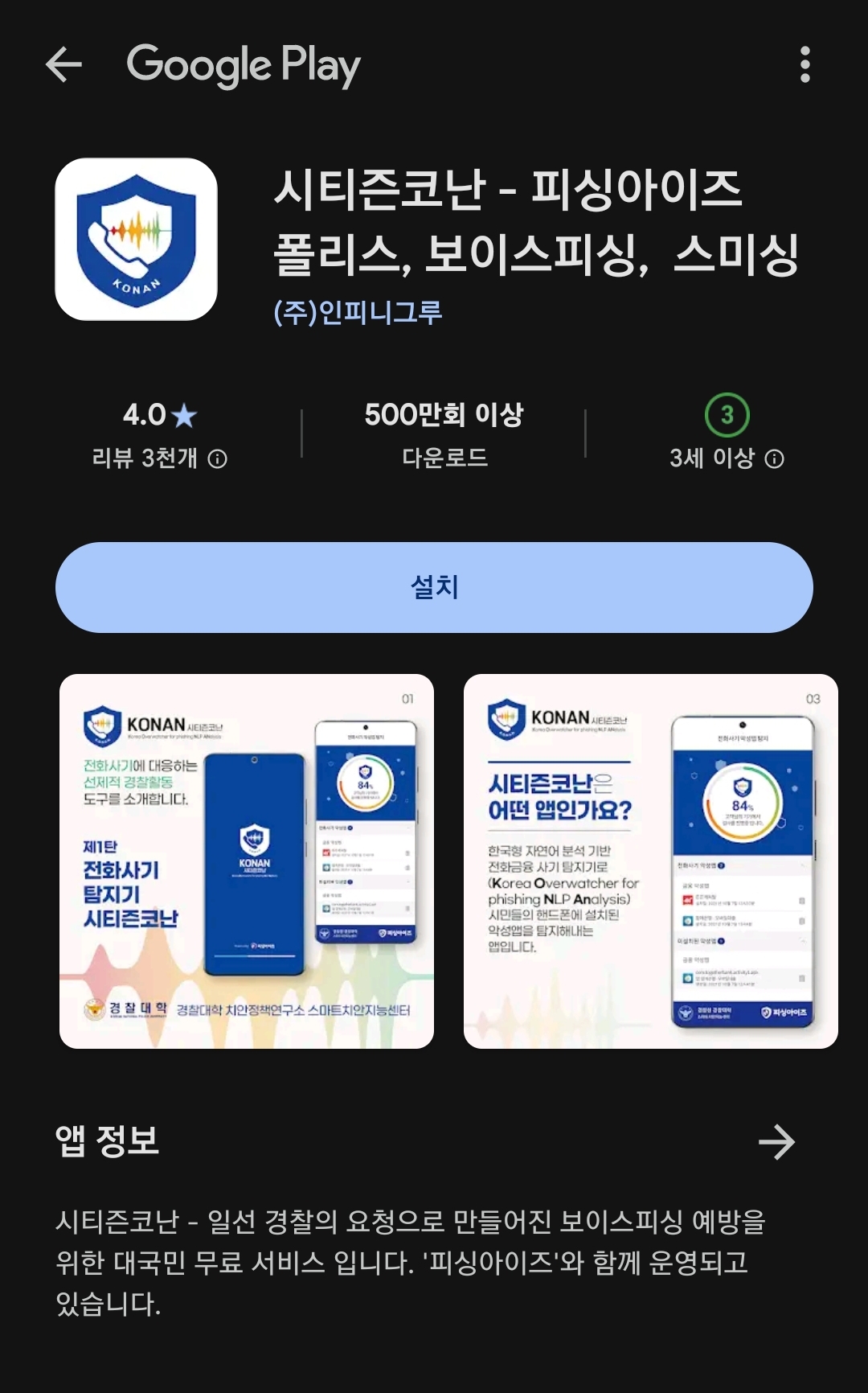 일선 경찰의 요청으로 만들어진 국민들의 보이스피싱 예방을 위해 무료로 만들어진 무료 어플이에요.