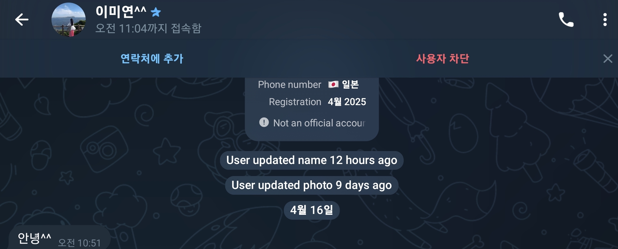 텔레그램에서 모르는 해외 사용자로부터 “안녕” 또는 “안녕하세요” 인사 메시지의 목적